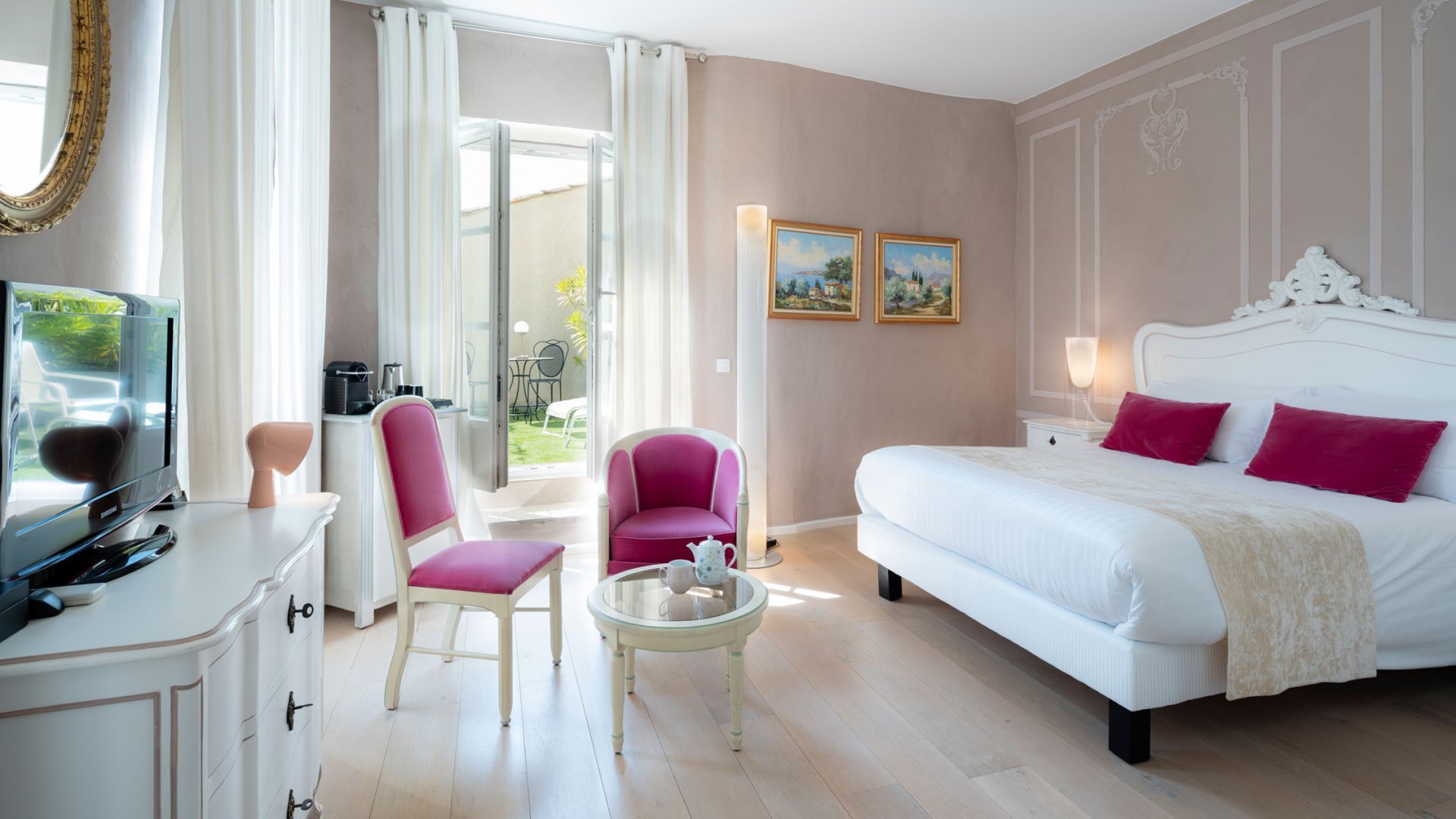 Les 11 chambres et suites, toutes différentes, allient confort moderne et atmosphère apaisante, entre pierres anciennes, fresques murales et lumière du Sud.